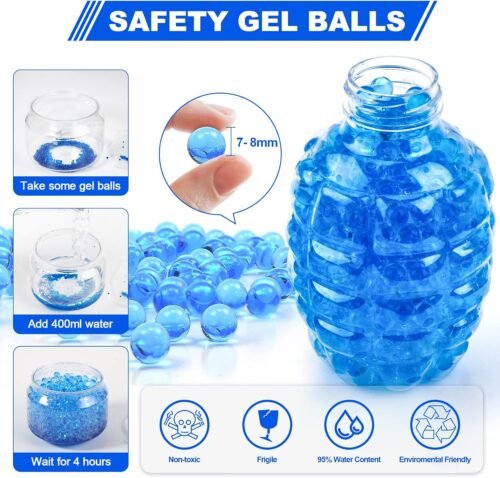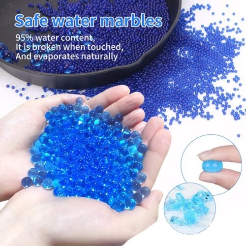 The water bead ammo is made from non-toxic, biodegradable polymers that expand when soaked in water. These gel balls break on impact, making them safe, non-staining, and mess-free. Perfect for outdoor play, and ideal for parents who want a worry-free toy for active kids.