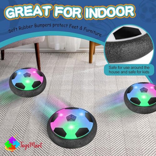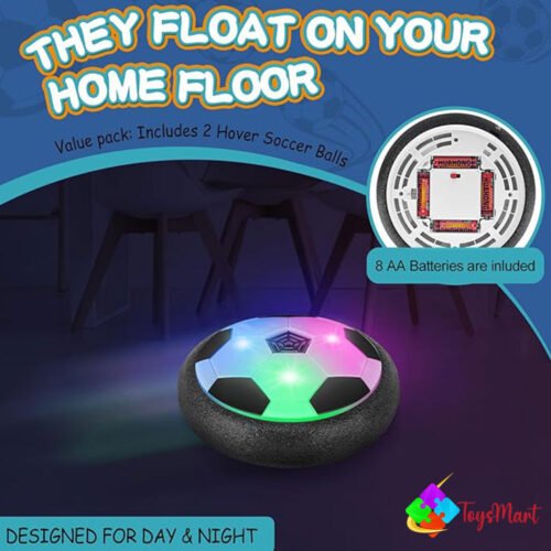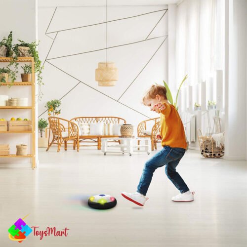 Experience nonstop fun with the Battery Operated Air Floating Soccer Ball This hover soccer toy glides smoothly on any flat surface with LED lights and a soft foam bumper—perfect for safe indoor play and active entertainment for kids of all ages.