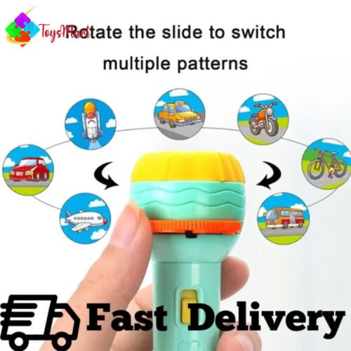 The Educational Projector Flashlight Toy works like a mini projector combined with a flashlight. It’s lightweight, portable, and easy to use — even for toddlers. Simply insert a picture slide into the toy, switch on the light, and adjust the focus to project clear images on the wall or ceiling.