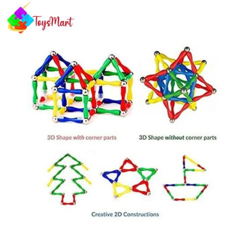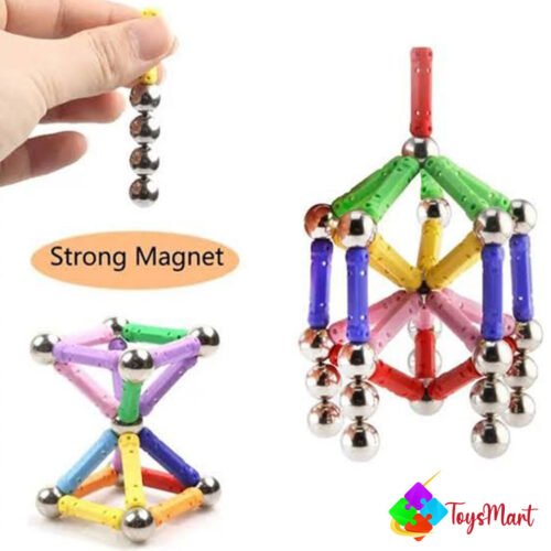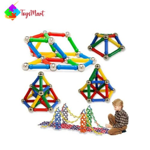 A Magnetic Balls Sticks Building Block set typically includes colorful magnetic rods (sticks) and metal balls that easily connect to each other through magnetic attraction. Kids can use these pieces to construct 2D and 3D shapes such as cubes, pyramids, bridges, and towers.