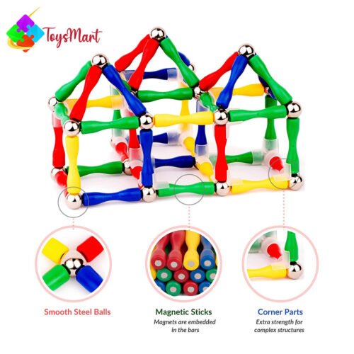 Each stick has built-in Magnetic Balls Sticks Building Block. When a child connects a stick to a ball, the magnetic force holds them together firmly yet allows flexibility for rebuilding.