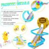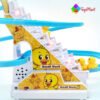 The Small Duck Climbing Stairs toy is built with an innovative design that sparks curiosity and joy. As soon as you switch it on, the cute little ducks begin their journey up the colorful staircase. Once they reach the top, they slide down smoothly, only to start climbing again — creating a delightful, endless loop.